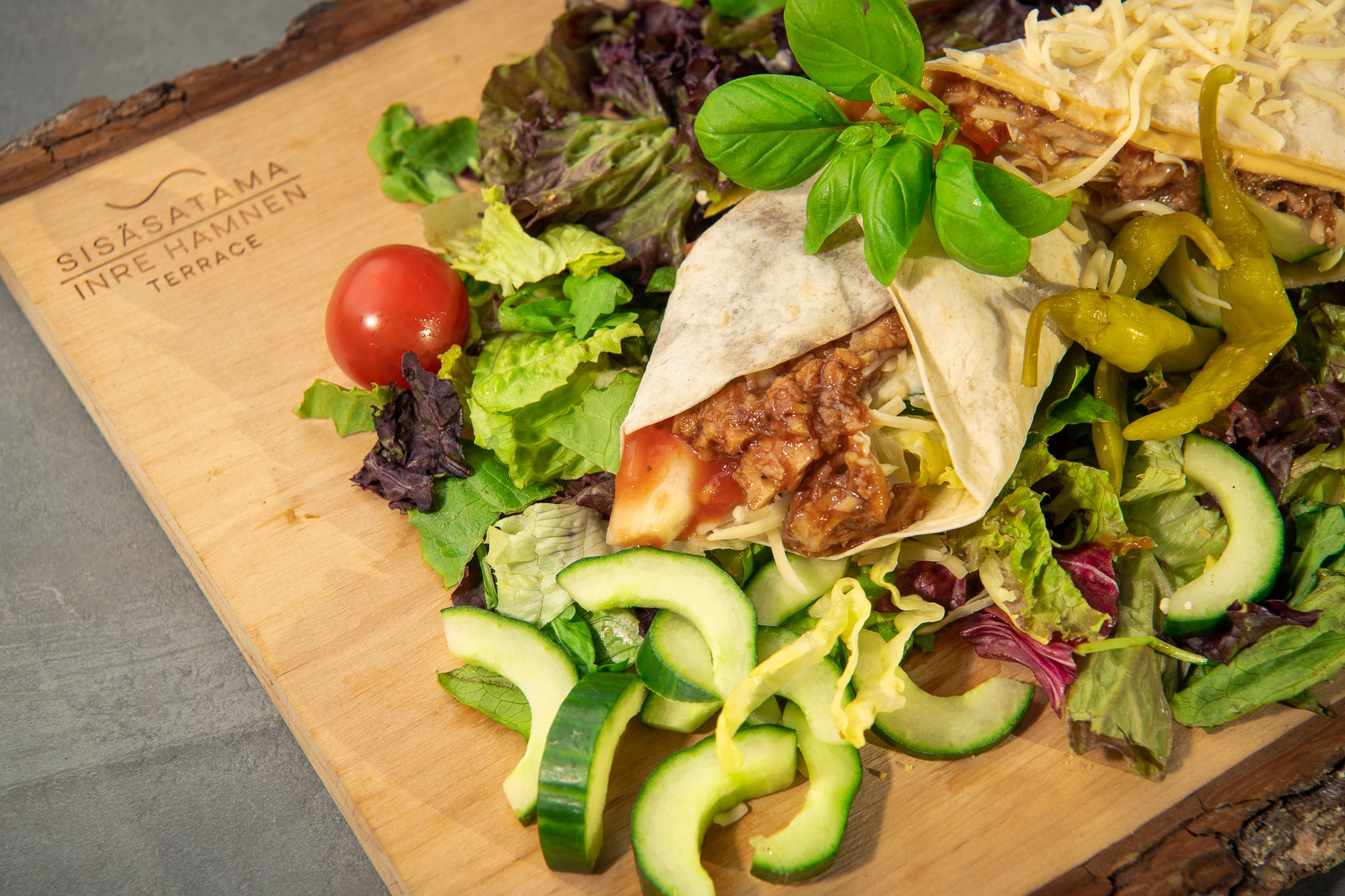 (Kaikki wrapit tarjoillaan salaattipedillä)