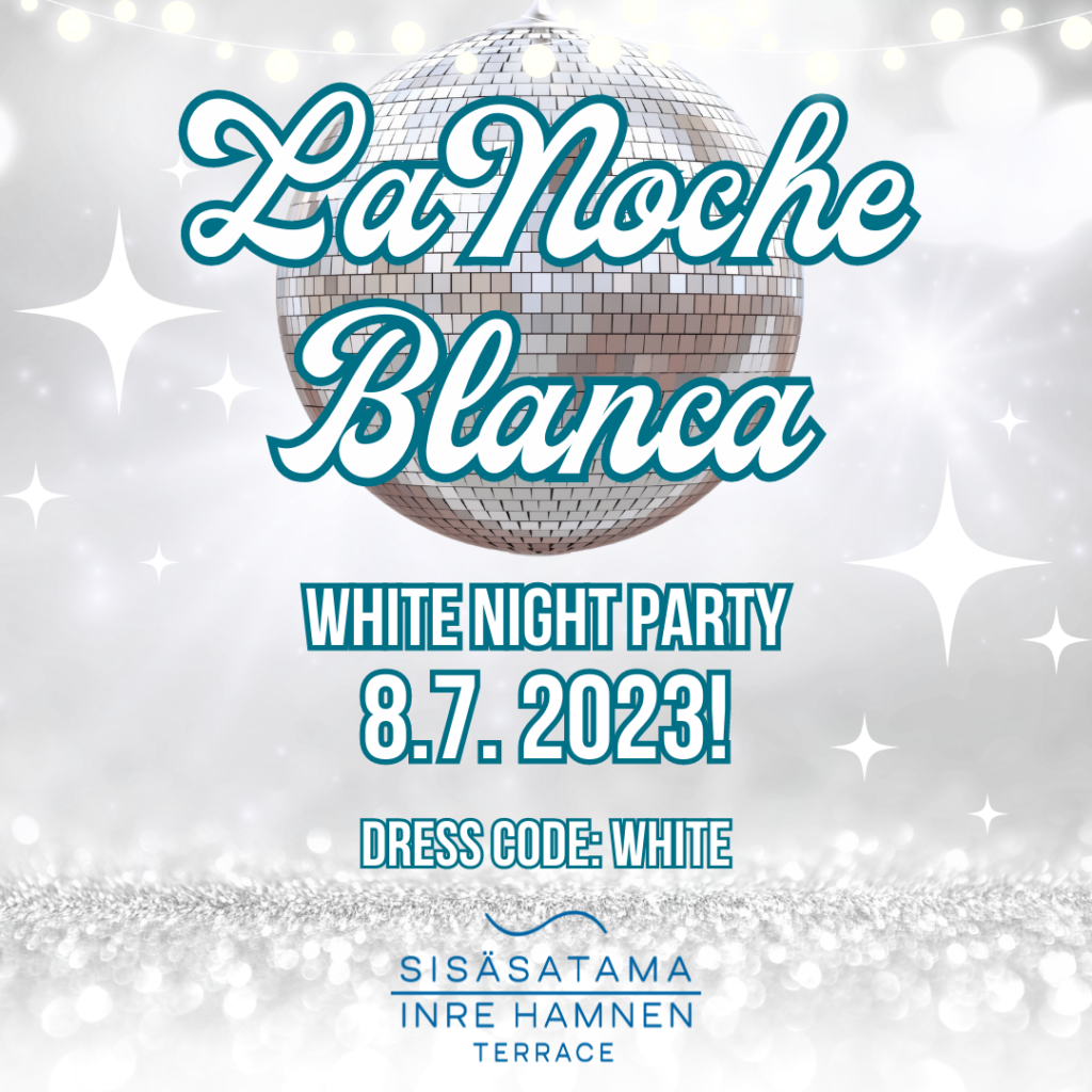 Lauantaina 8.7.2023 Sisäsataman Terassilla luvassa on La Noche Blanca! 💃 Bileiden pukukoodina toimii tottakai valkoinen väri! Nyt on siis täydellinen tilaisuus kaivaa esiin valkoiset kesämekot, tai vaikkapa farkut ja kauluspaidat✨ Luvassa on unohtumaton ilta, sillä valkeana kesäyönä valkoisiin pukeutunutta juhlakansaa viihdyttää kukas muu kuin Boom